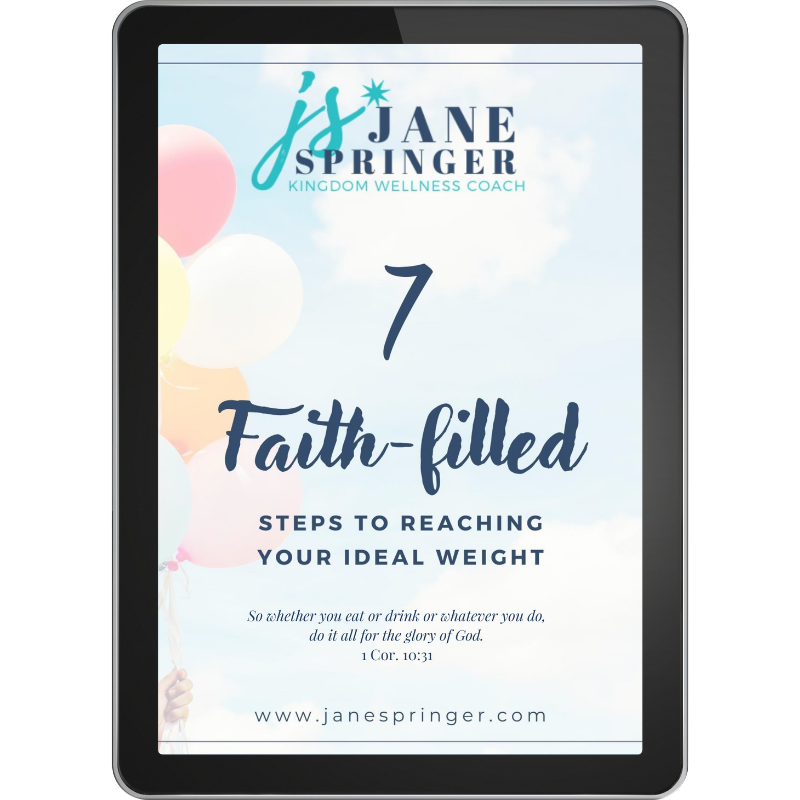 I am Jane Springer, a certified life and weight loss coach, who gained the weight and finally lost it by using the steps in my free 7 Faith-Filled Steps to Reaching Your Ideal Weight.